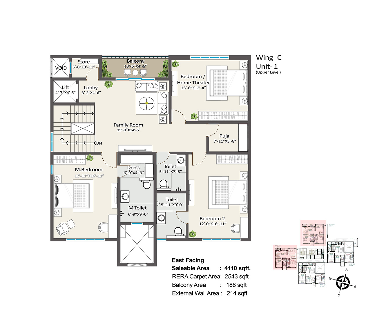 4/5 BHK residences spanning from 3900 sq ft to 5190 sq ft including duplexes.